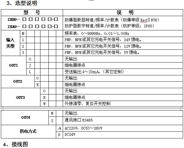 供電電源: 交直流65~260V;DC 24V。
