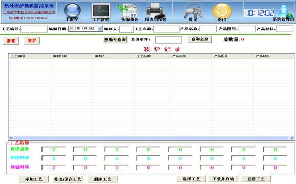 每批產(chǎn)品的編號、名稱圖號裝爐時間、出爐時間、數(shù)量、爐號、工藝代號、工藝員及操作員姓名等自動存檔。