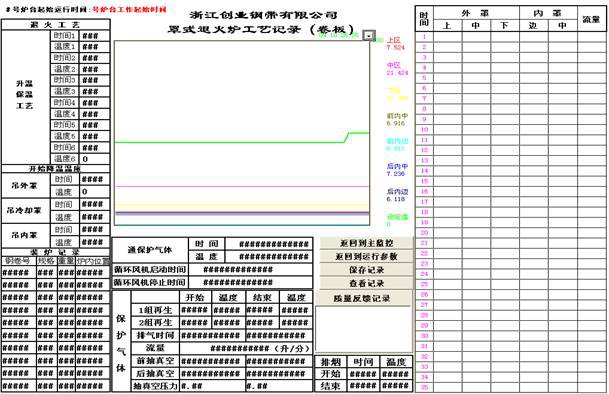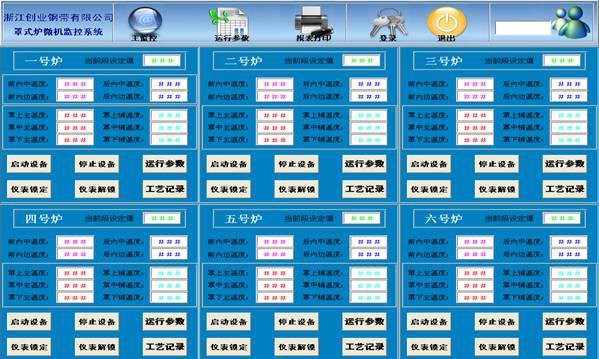 根據(jù)用戶要求編制生產(chǎn)報表,并具有手動打印和定時自動打印功能。每批產(chǎn)品的編號、工件名稱、圖號、裝爐時間、出爐時間、保溫時間、加熱溫度、數(shù)量、爐號、操作工姓名等自動存檔。